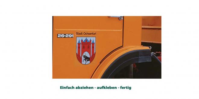 Für die Fertigung benötigen wir von Ihnen ledglich eine Druck-Datei (PDF, EPS usw.), welche ihr Wappen und Logo wiedergibt, und wir Machen uns an die Arbeit. Dann brauchen Sie die Beschriftung nur noch auf einen sauberen Untergrund zu kleben (z.B. Autotür). Dies gelingt relative problemlos.Ihr Kommunalfahrzeug ist sofort wieder einsatzbereit.