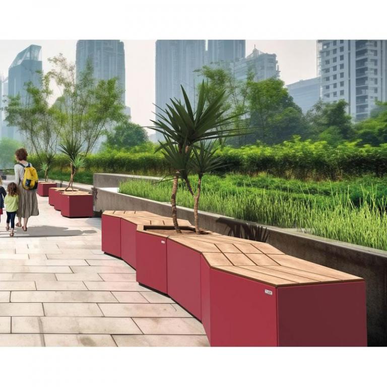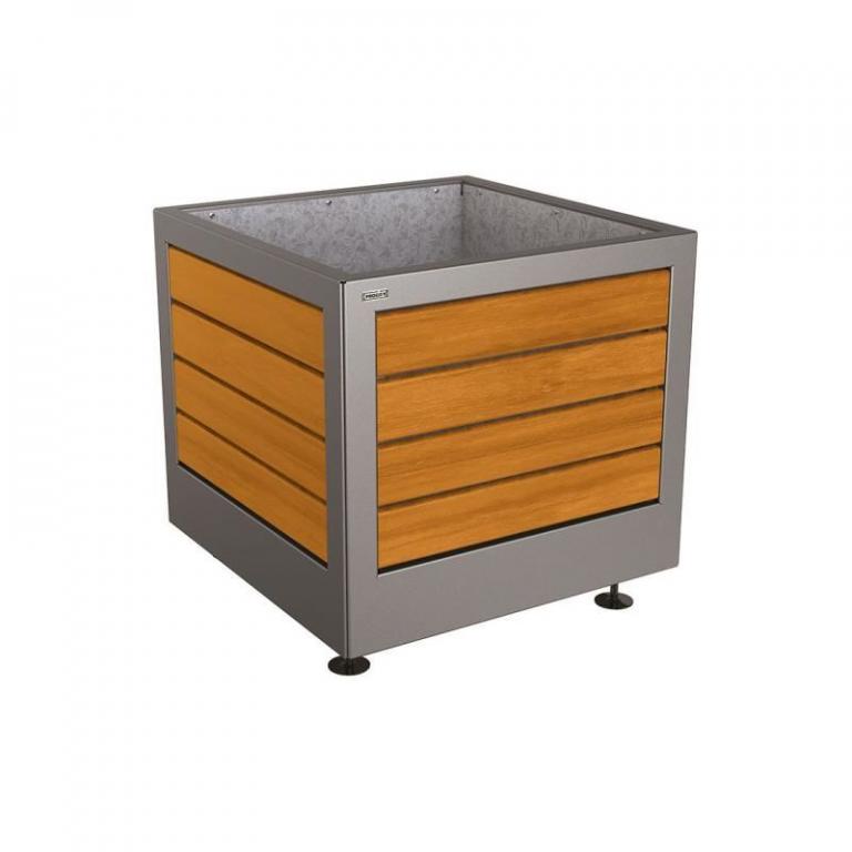 Für die Montage sind Verankerungsstäbe vorgesehen, die jedoch nicht im Lieferumfang enthalten sind. Dadurch können Sie den Pflanzbehälter fest und sicher in nahezu jedem Untergrund verankern. Die Ausführung ist verzinkt und in den verschiedenen RAL-Farben unserer Palette beschichtet, während das Holz entweder in heller Eiche oder Mahagoni lasiert ist, um verschiedenen ästhetischen Anforderungen gerecht zu werden. Als Teil unserer umfangreichen Produktlinie für Außenmöbel fügt sich der Pflanzbehälter Kube nahtlos in unterschiedlichste Umgebungen ein, sei es als Solitär oder in Kombination mit anderen Produkten unserer Kube-Serie. Er eignet sich perfekt für die Begrünung von Fußgängerzonen, Parks, Gärten oder auch private Innenhöfe. Die flexible Gestaltung des Kube. Pflanzbehälters ermöglicht es, individuelle und kreative Lösungen für unterschiedlichste Projekte zu realisieren. Zudem kann jede Ausführung auf besondere Anforderungen hin angepasst werden, um spezifischen Projektbedürfnissen gerecht zu werden.