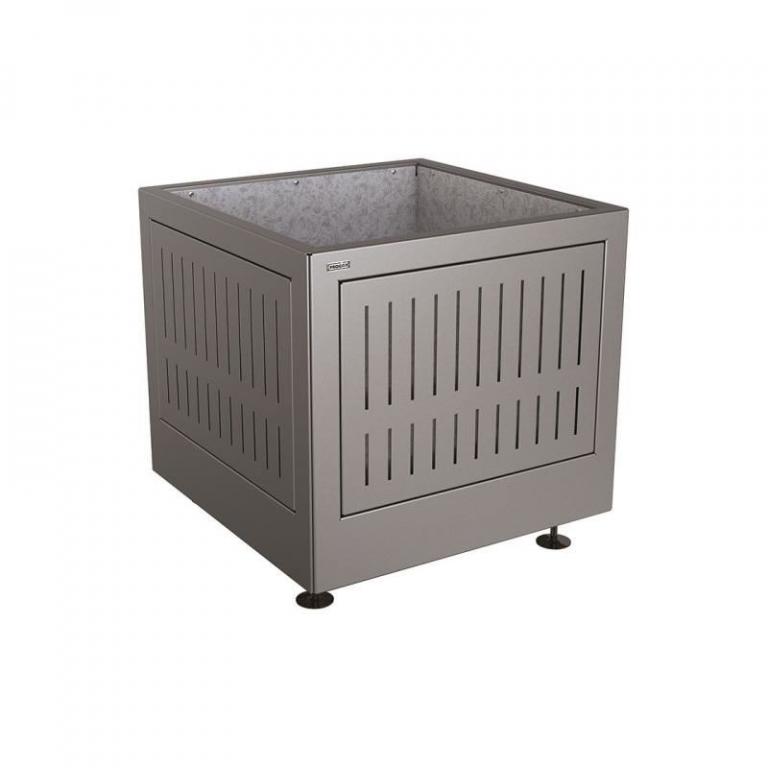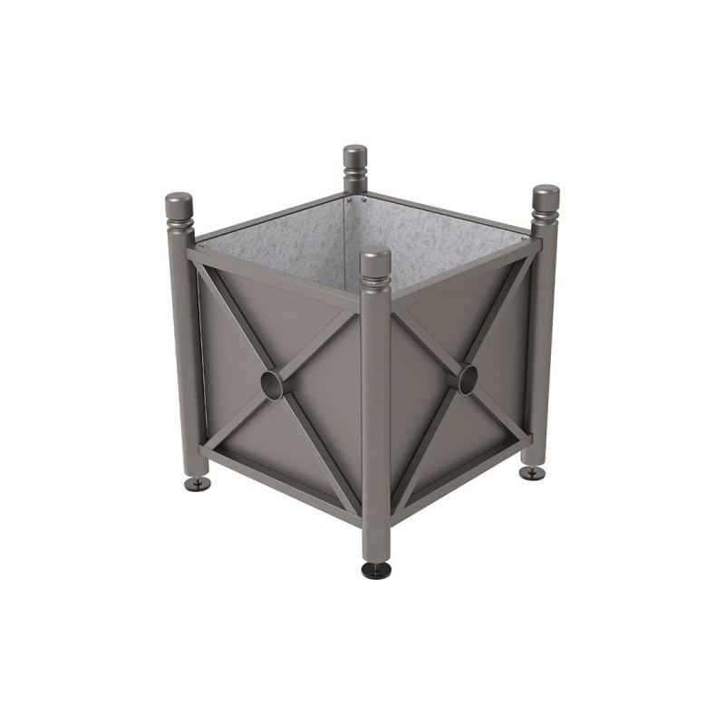 Dieses Modell ist in zwei Innenausführungen verfügbar: Sie können zwischen einer feuerverzinkten Stahlblechverkleidung und einem Blechinnenfach aus feuerverzinktem Stahl mit Verladungsgriffen wählen. Beide Ausführungen gewährleisten Langlebigkeit und eine einfache Handhabung. Der Pflanzbehälter wird auf verstellbaren Füßen montiert geliefert, was die Installation erheblich vereinfacht und eine flexible Anpassung an unebene Bodenverhältnisse ermöglicht. Optional ist ein Wasserspeicher erhältlich, der mit Geotextil, Tonkugeln und einem Belüftungsschlauch ausgestattet ist. Diese Option ist jedoch nicht kompatibel mit dem Innenfach aus verzinktem Blech.